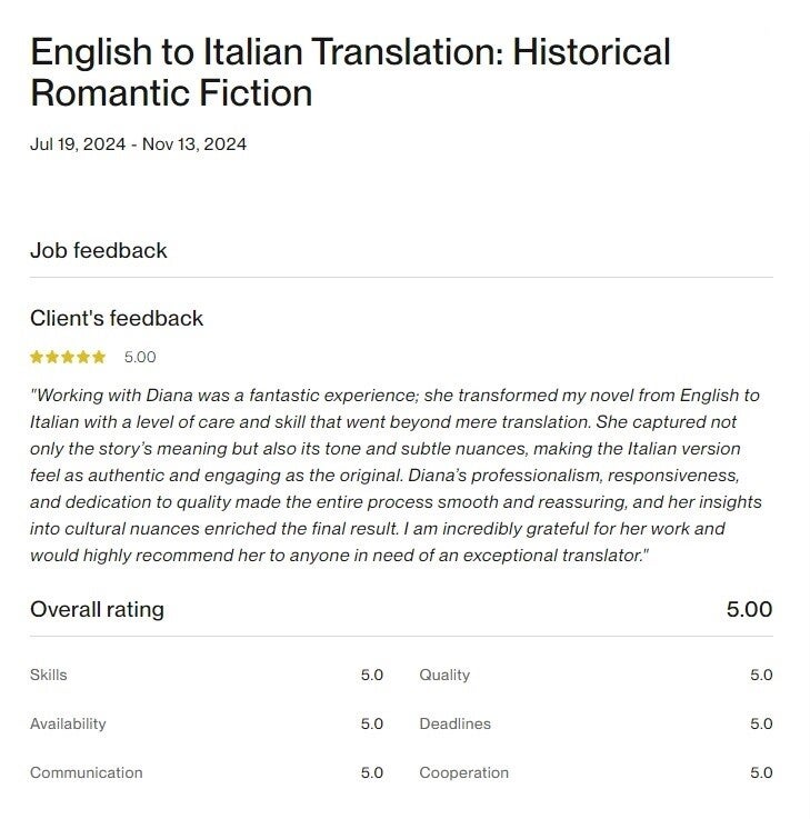 I don’t translate your book — I translate your reader experience into Italian